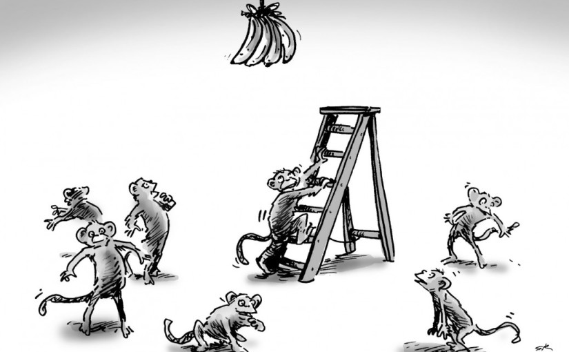 You may have seen this story about the Five Monkeys Experiment recently: Apparently it is supposed to describe a real scientific … Continue reading That “Five Monkeys Experiment” Never Happened